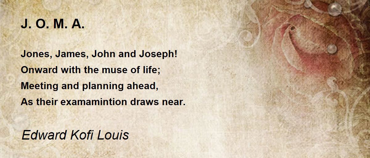 Jones, James, John and Joseph! Onward with the muse of life; Meeting and planning ahead, As their examamintion draws near.