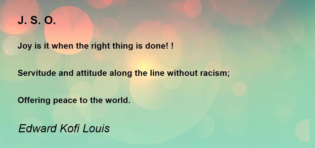 Joy is it when the right thing is done! ! Servitude and attitude along the line without racism; Offering peace to the world.