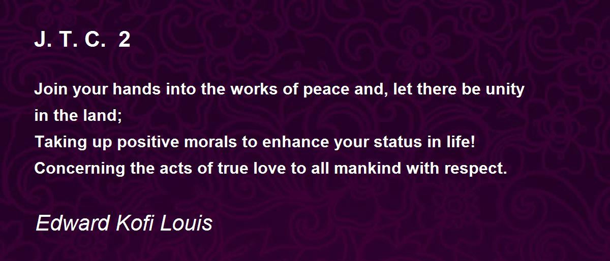 How sublime these advices are, coming in the form of a three-verse poem! From the simplicity of words, you can hear the poet's passionate appeal for unity, peace and respect, urging the readers of all ages to take notice and engage in acts of true!