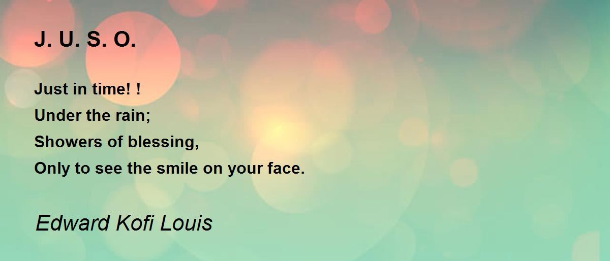 Just in time! ! Under the rain; Showers of blessing, Only to see the smile on your face.