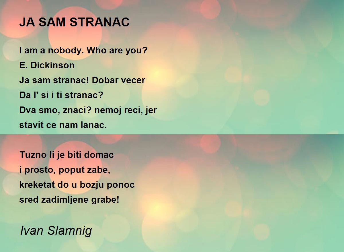 Ja sam stranac! Dobar vecer