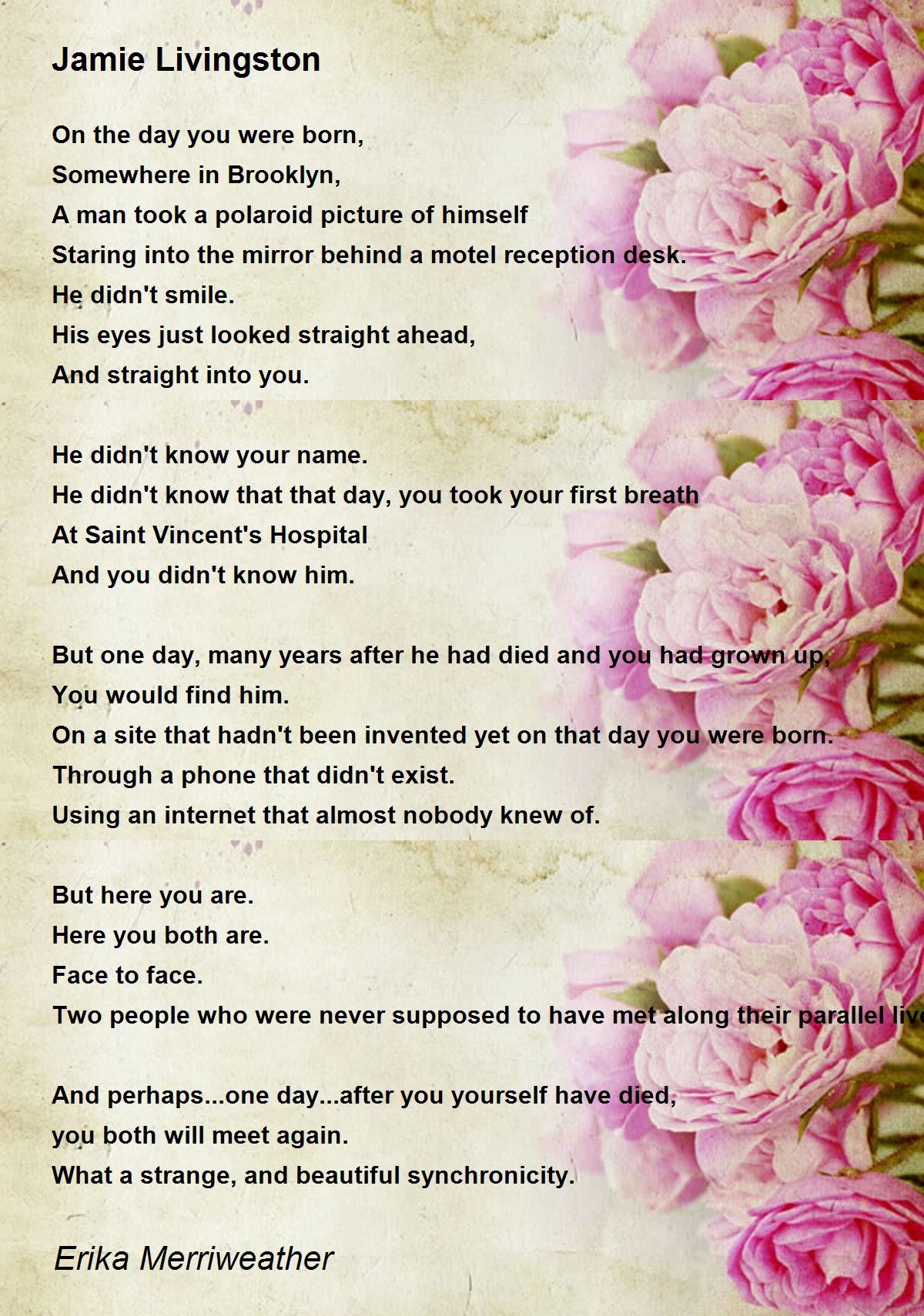 He didn't know that that day, you took your first breath