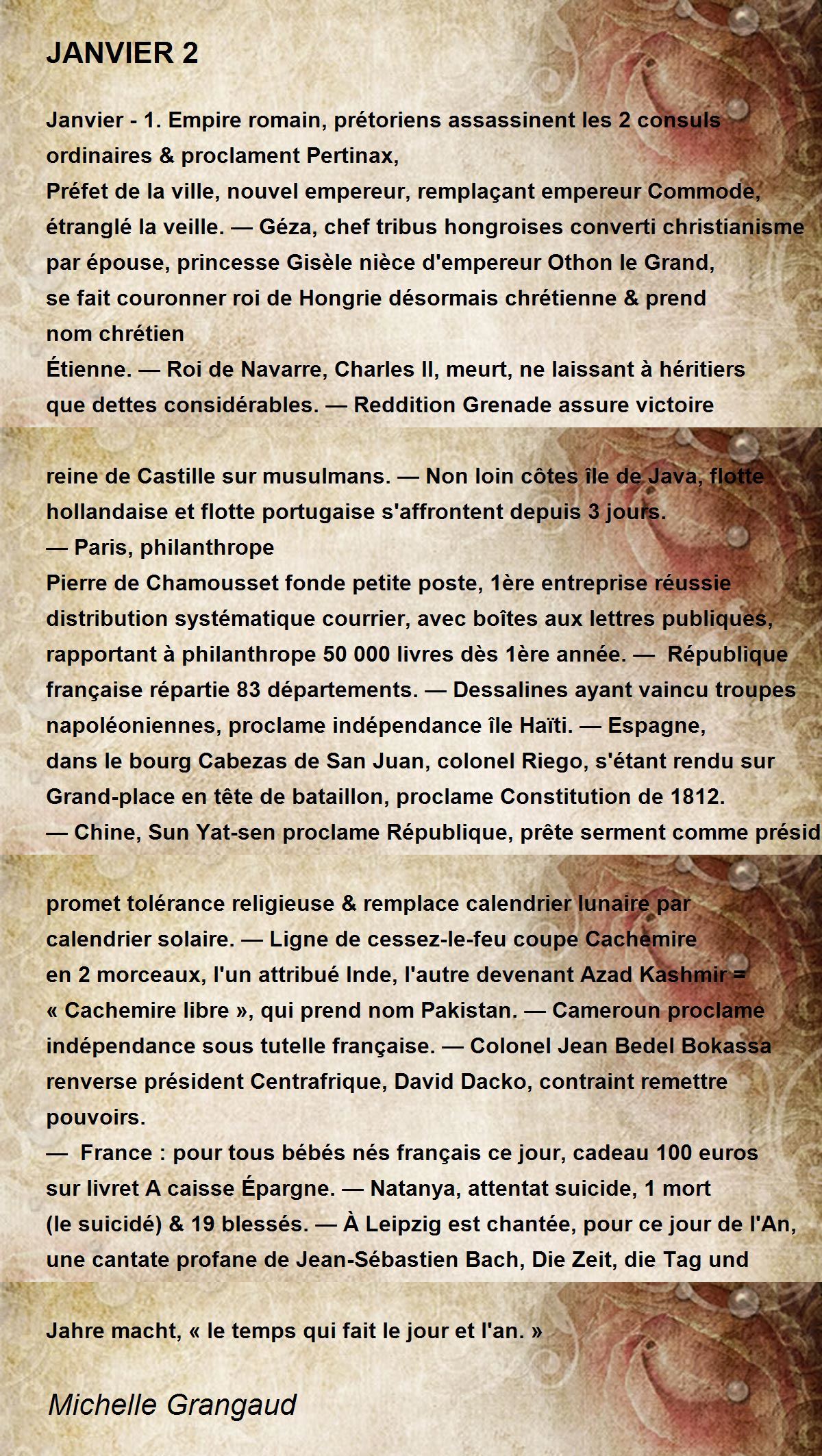 Janvier - 1. Empire romain, prétoriens assassinent les 2 consuls ordinaires & proclament Pertinax,