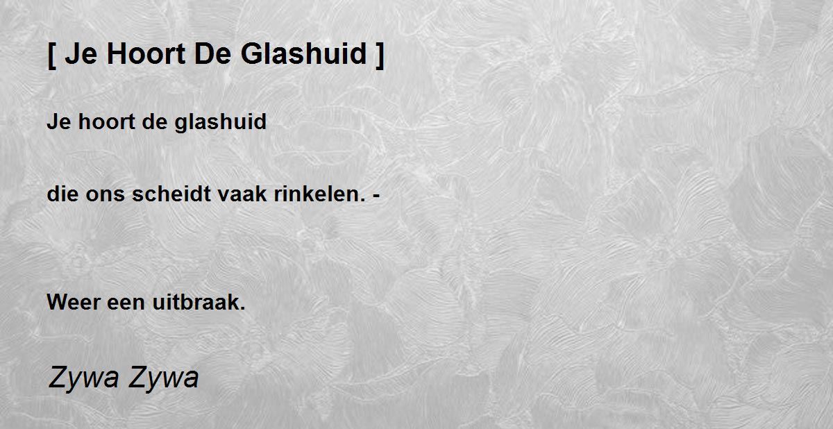 Je hoort de glashuid die ons scheidt vaak rinkelen. - Weer een uitbraak.