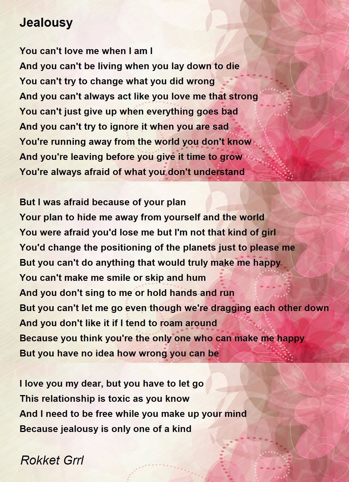 Because jealousy is only one of a kind