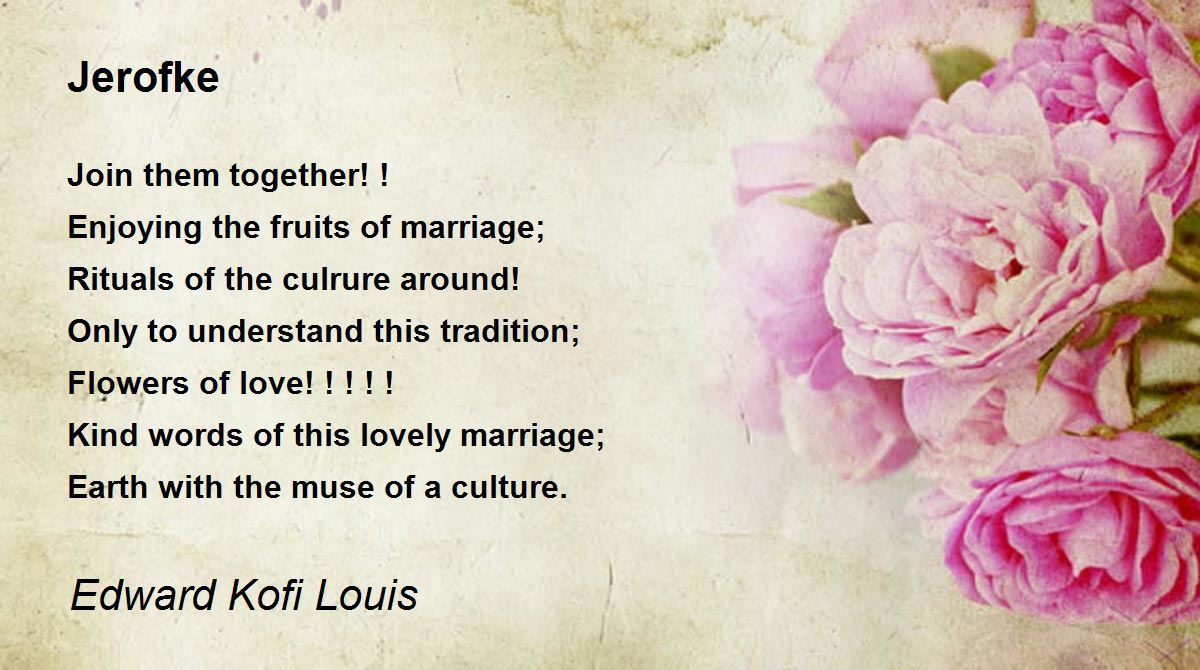 Jerofke is a delightful poem on the occasion of a marriage as per the tradition and culture. Well penned....5 stars