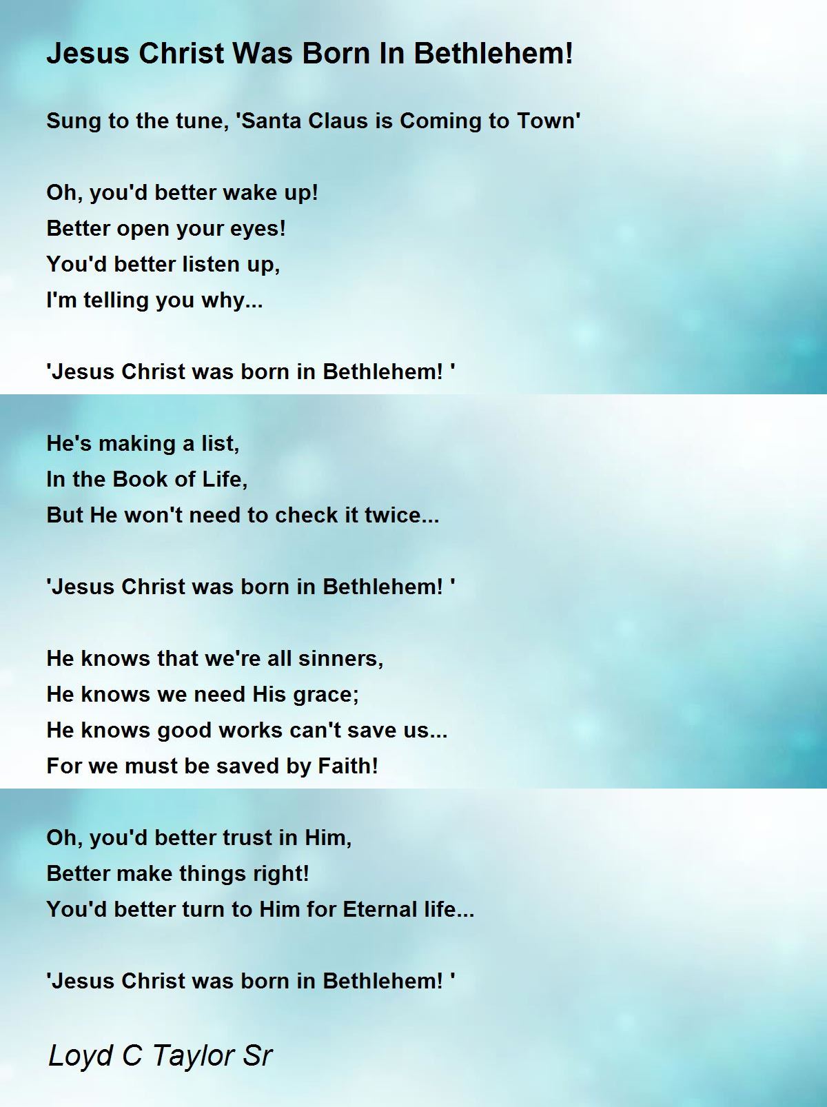 'Jesus Christ was born in Bethlehem! '