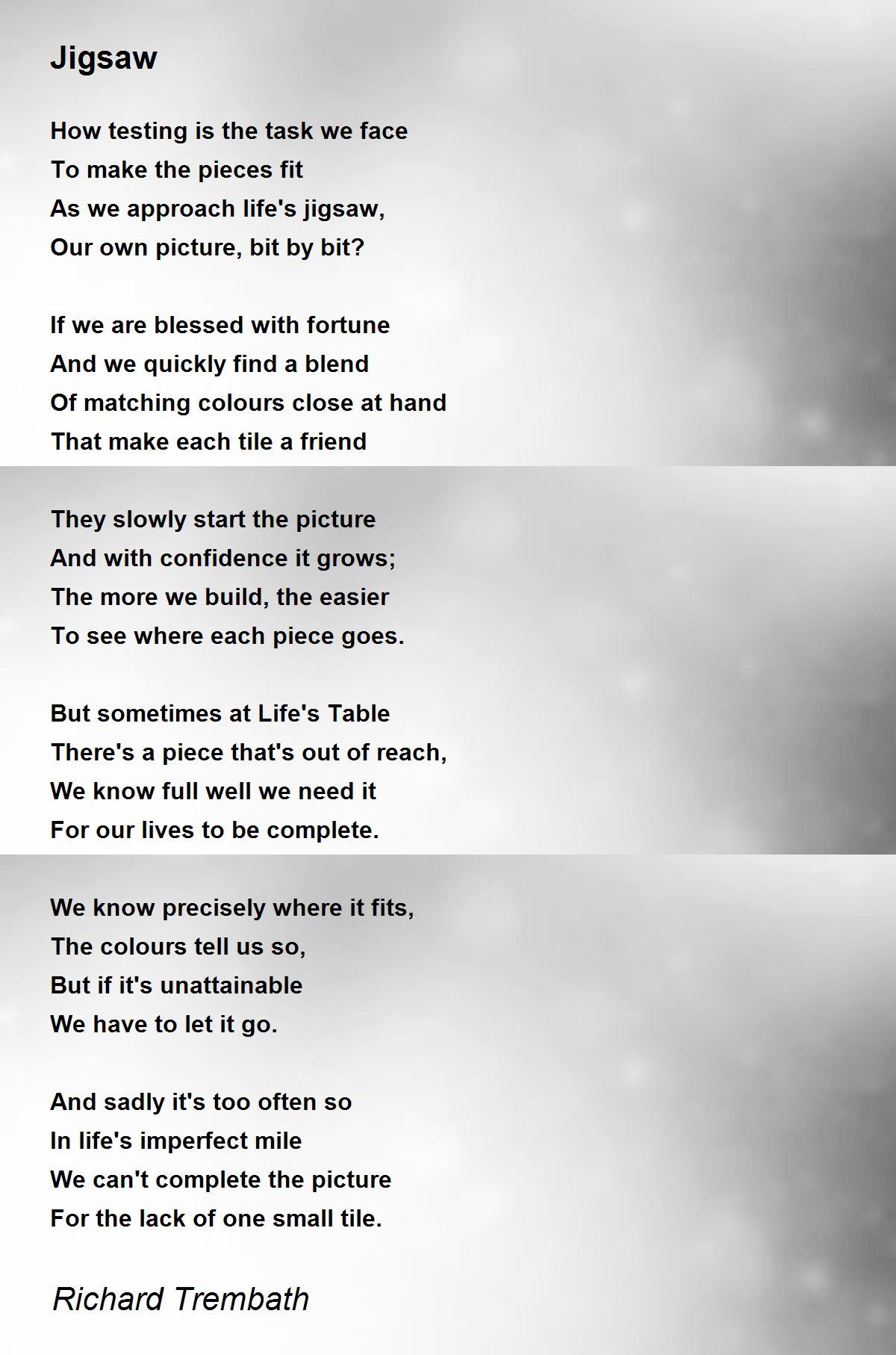 As we approach life's jigsaw,