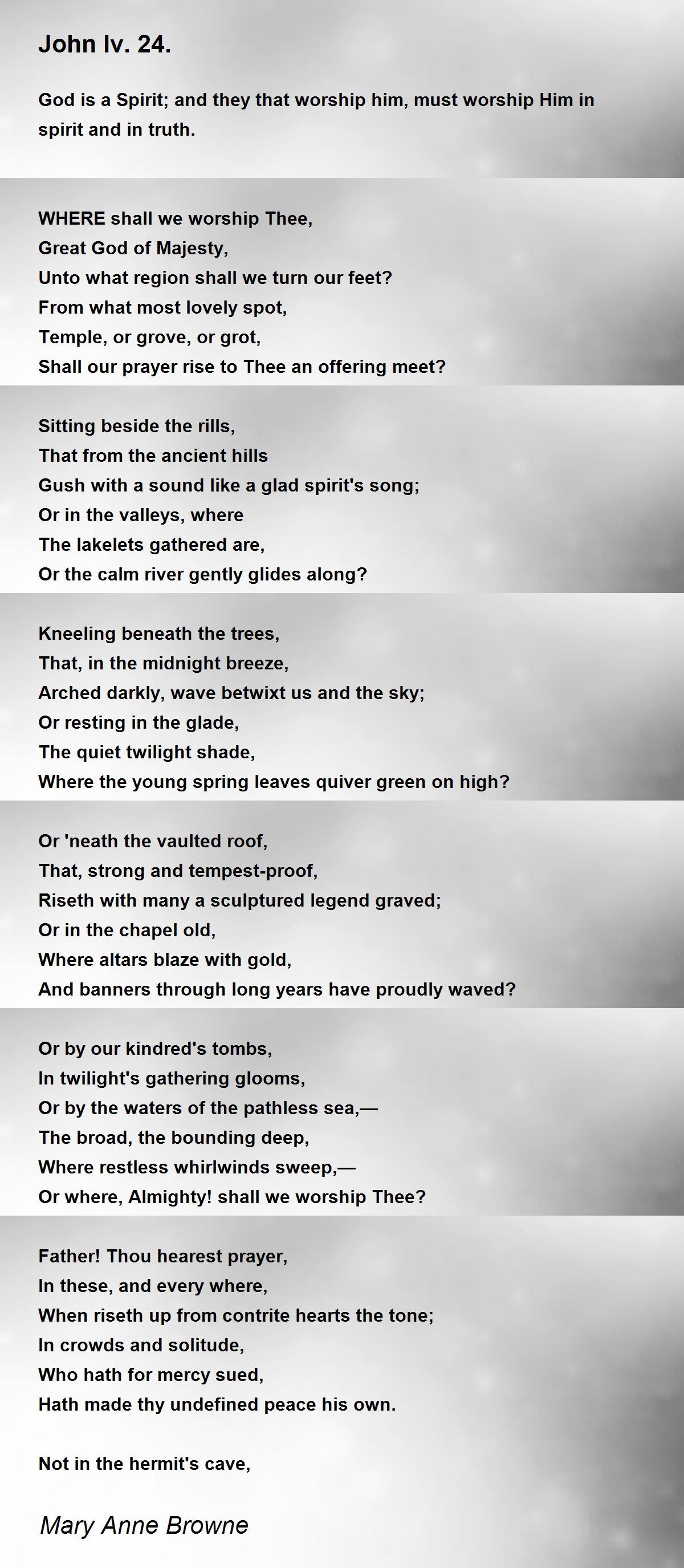 God is a Spirit; and they that worship him, must worship Him in spirit and in truth.
