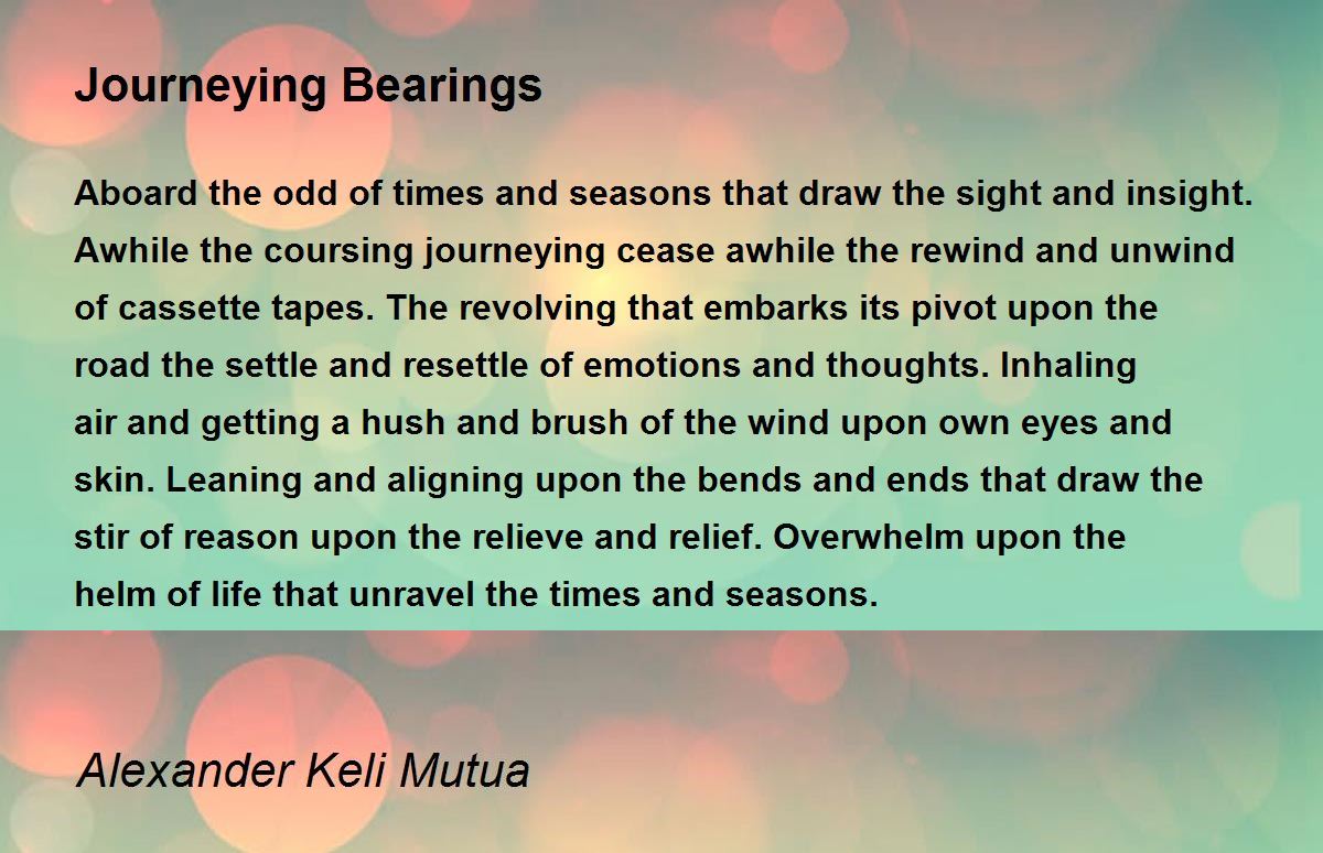 Aboard the odd of times and seasons that draw the sight and insight. Awhile the coursing journeying cease awhile the rewind and unwind of cassette tapes. The revolving that embarks its pivot upon the road the settle and resettle of emotions and thoughts. Inhaling air and getting a hush and brush of the wind upon own eyes and skin. Leaning and aligning upon the bends and ends that draw the stir of reason upon the relieve and relief. Overwhelm upon the helm of life that unravel the times and seasons.