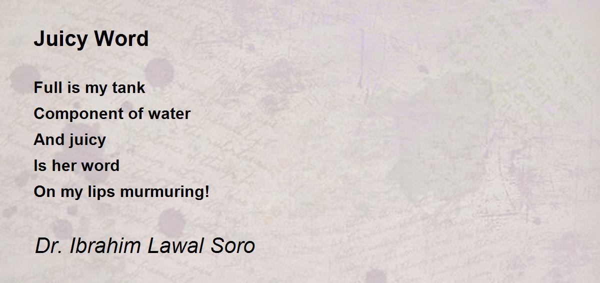 Full is my tank Component of water And juicy Is her word On my lips murmuring!