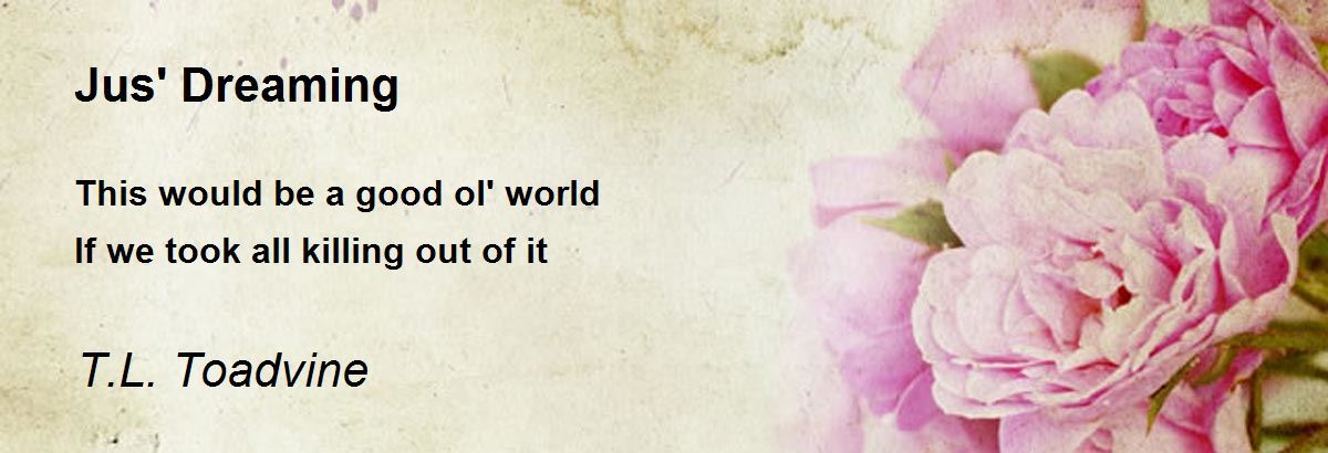 This would be a good ol' world If we took all killing out of it