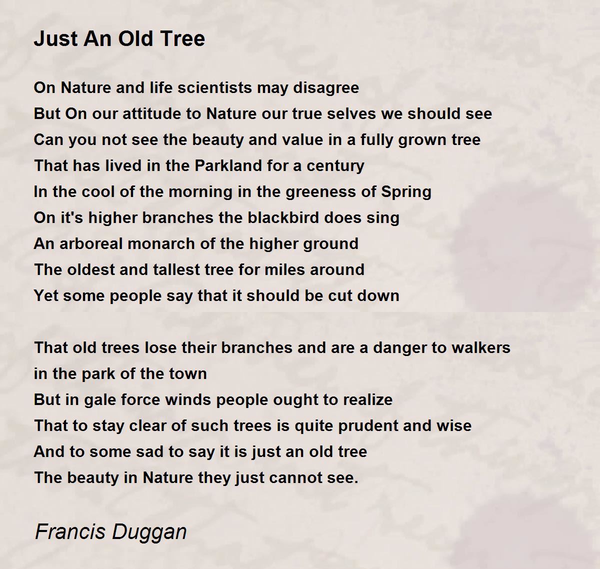 And to some sad to say it is just an old tree