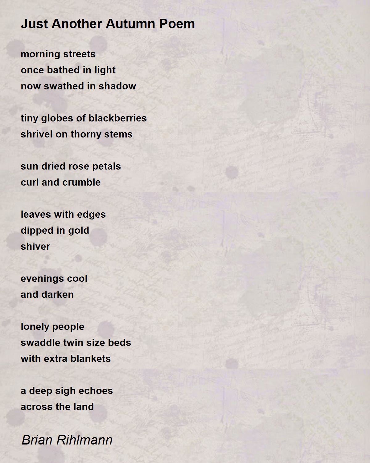 This is lovely, descriptive and with great imagery througout! The changes of the sessons often bring meloncholy feelings.10