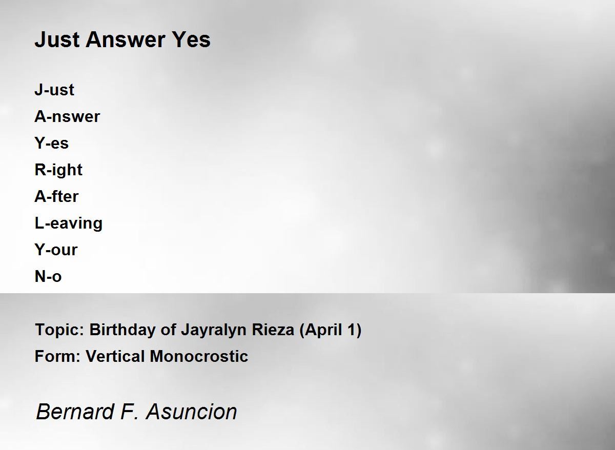 Topic: Birthday of Jayralyn Rieza (April 1)