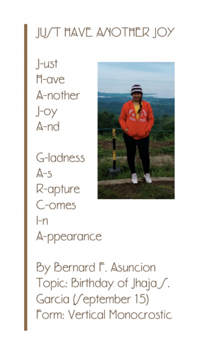 Topic: Birthday of Jhaja S. Garcia (September 15)