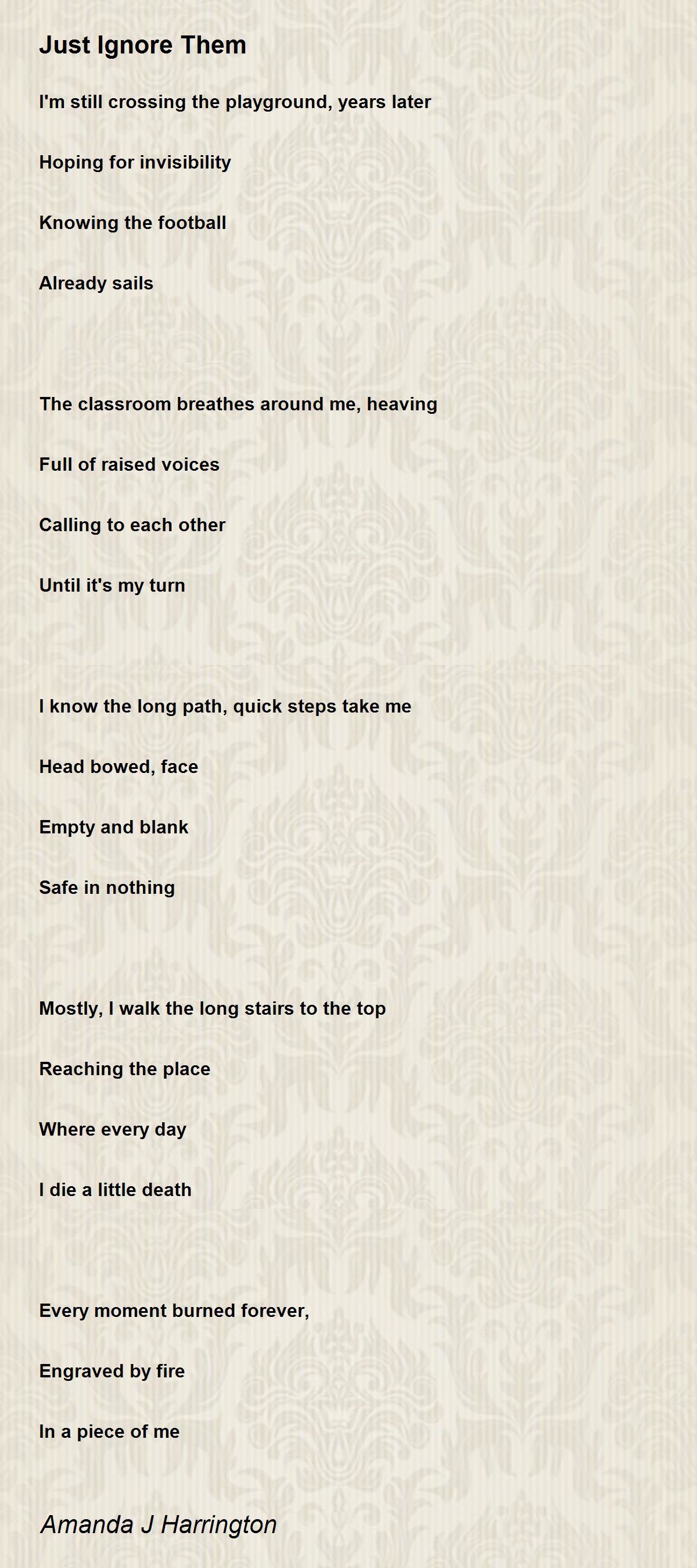 Ignoring what is in your face constantly was obviously impossible. I see scars inherited from cowards. Smile even though your heart is aching and keep holding that pen that often lightens the pain. Thank You Amanda