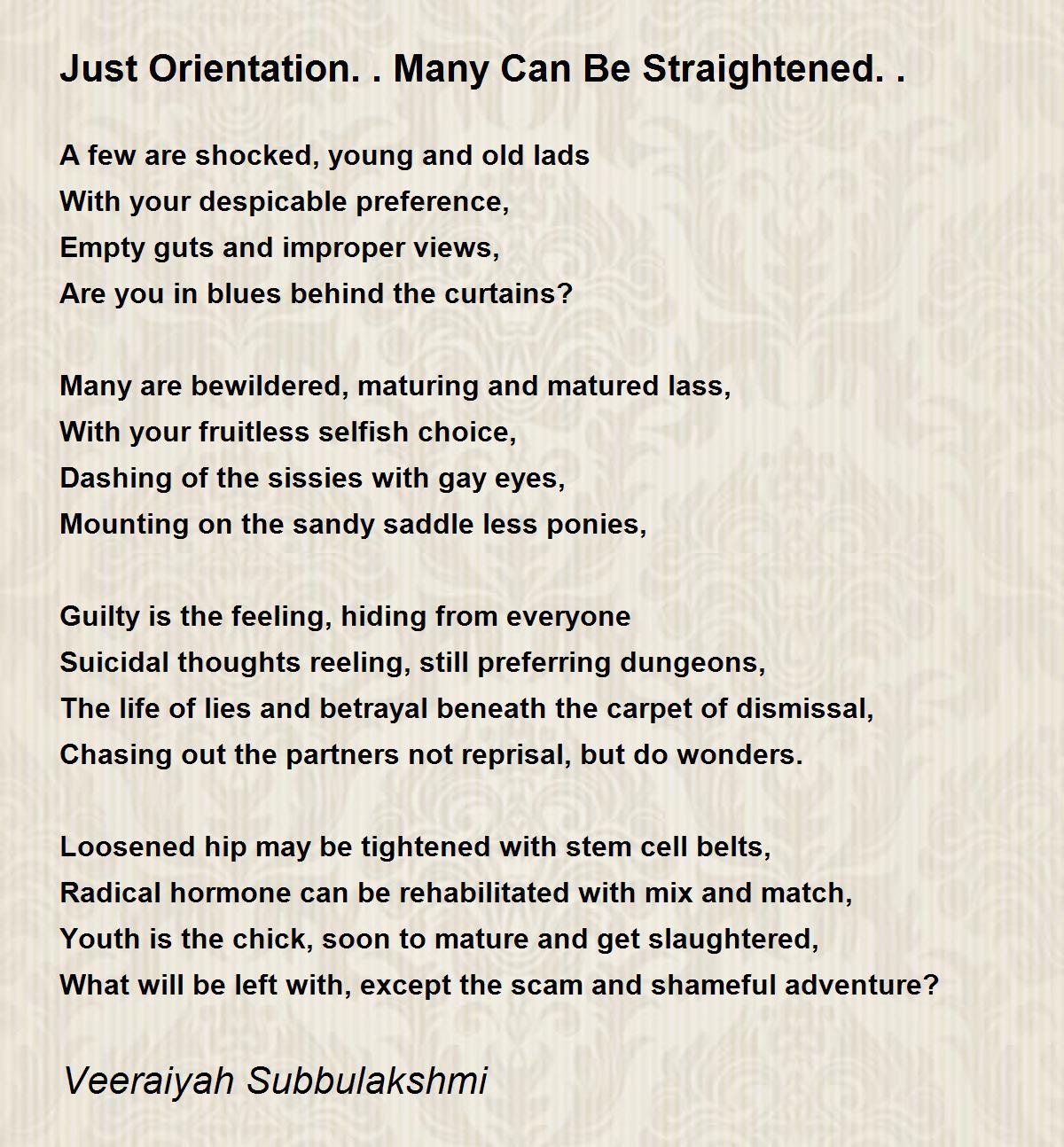 Very interesting poem you brought here that needs deep thought with many angle ..Showing secret parts and acting like sissy it is not same the first is temporary it can be cured but if both exist it is hormonal and remedy is not seen yet can be cured by providing environment ...thank you