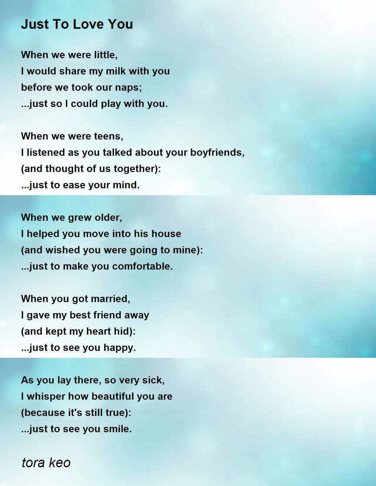 I listened as you talked about your boyfriends,