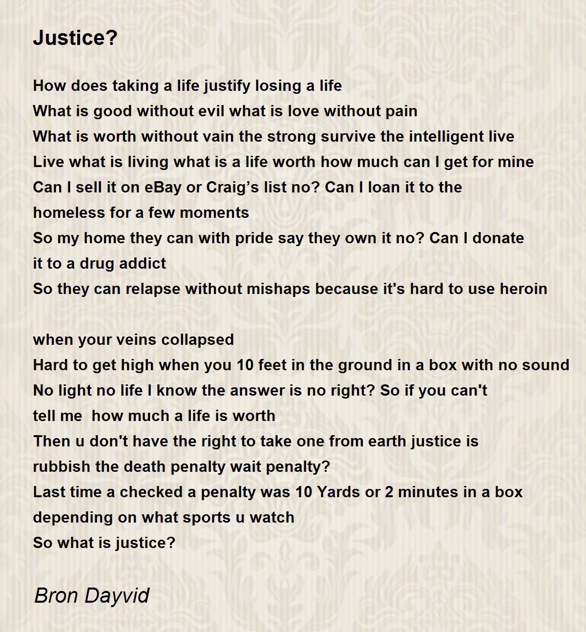 Then u don't have the right to take one from earth justice is rubbish the death penalty wait penalty?
