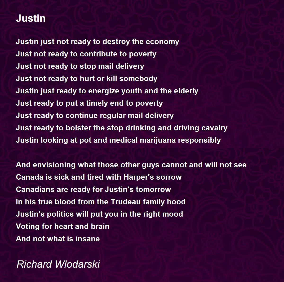 Very just, idealistic and inspiring poem Problem is that even IF Justin were around, he would Never be voted in. Unfortunately it's almost always the lowest of Crooks that win! . Great poems like this one, also win, our respect, admiration. and gratitude!