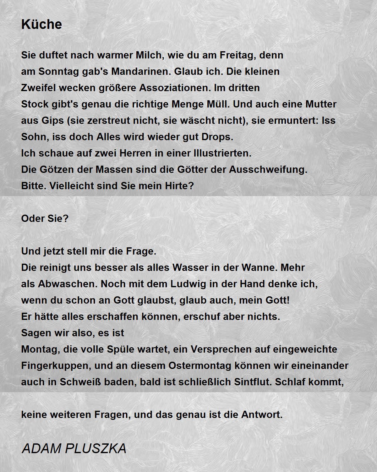auch in Schweiß baden, bald ist schließlich Sintflut. Schlaf kommt,