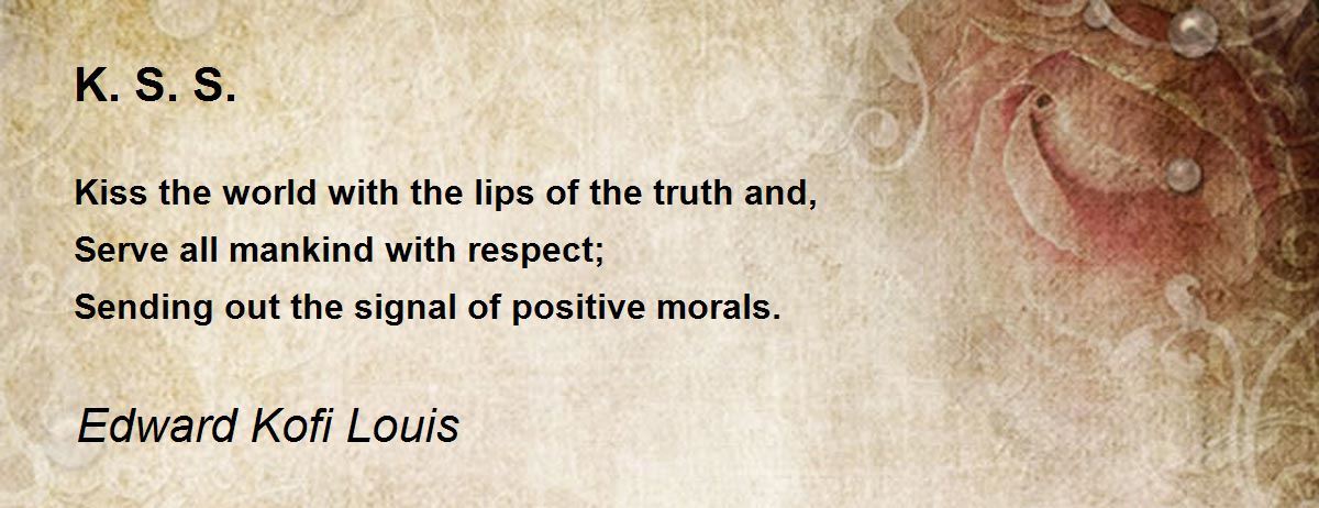 Kiss the world with the lips of the truth and, Serve all mankind with respect; Sending out the signal of positive morals.