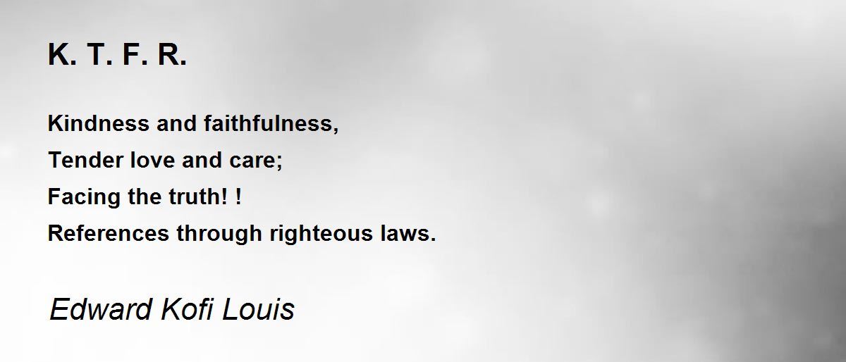 Kindness and faithfulness, Tender love and care; Facing the truth! ! References through righteous laws.
