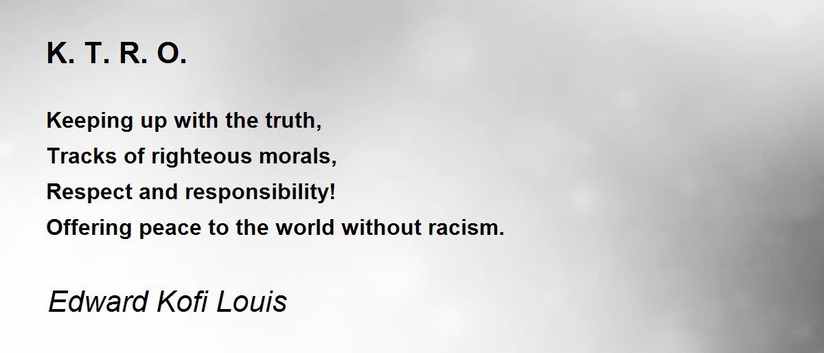 Keeping up with the truth, Tracks of righteous morals, Respect and responsibility! Offering peace to the world without racism.