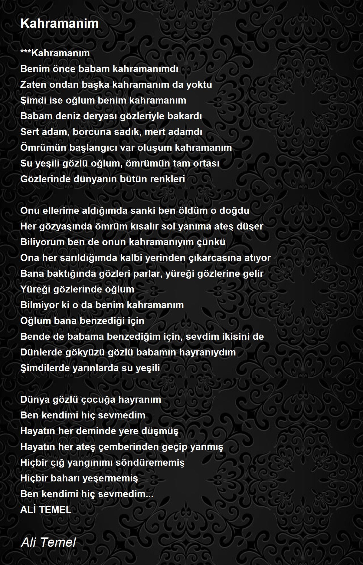 Su yeşili gözlü oğlum, ömrümün tam ortası