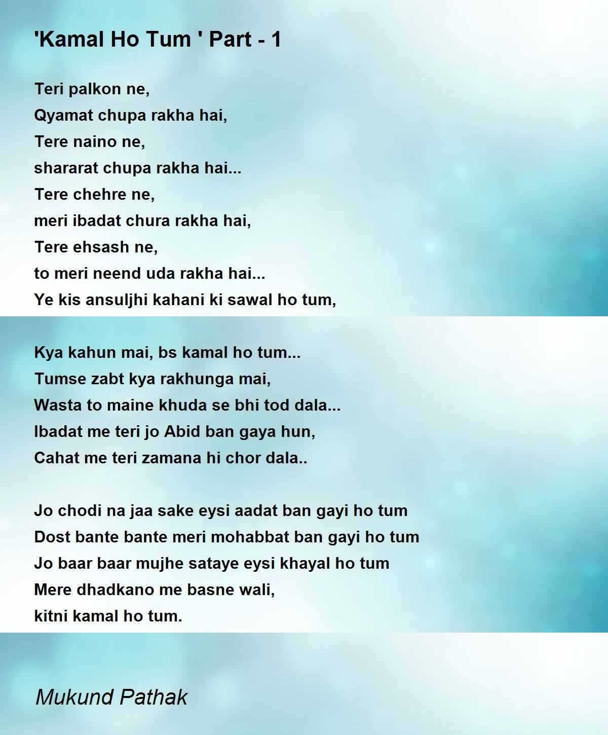 Kya kahun mai, bs kamal ho tum...