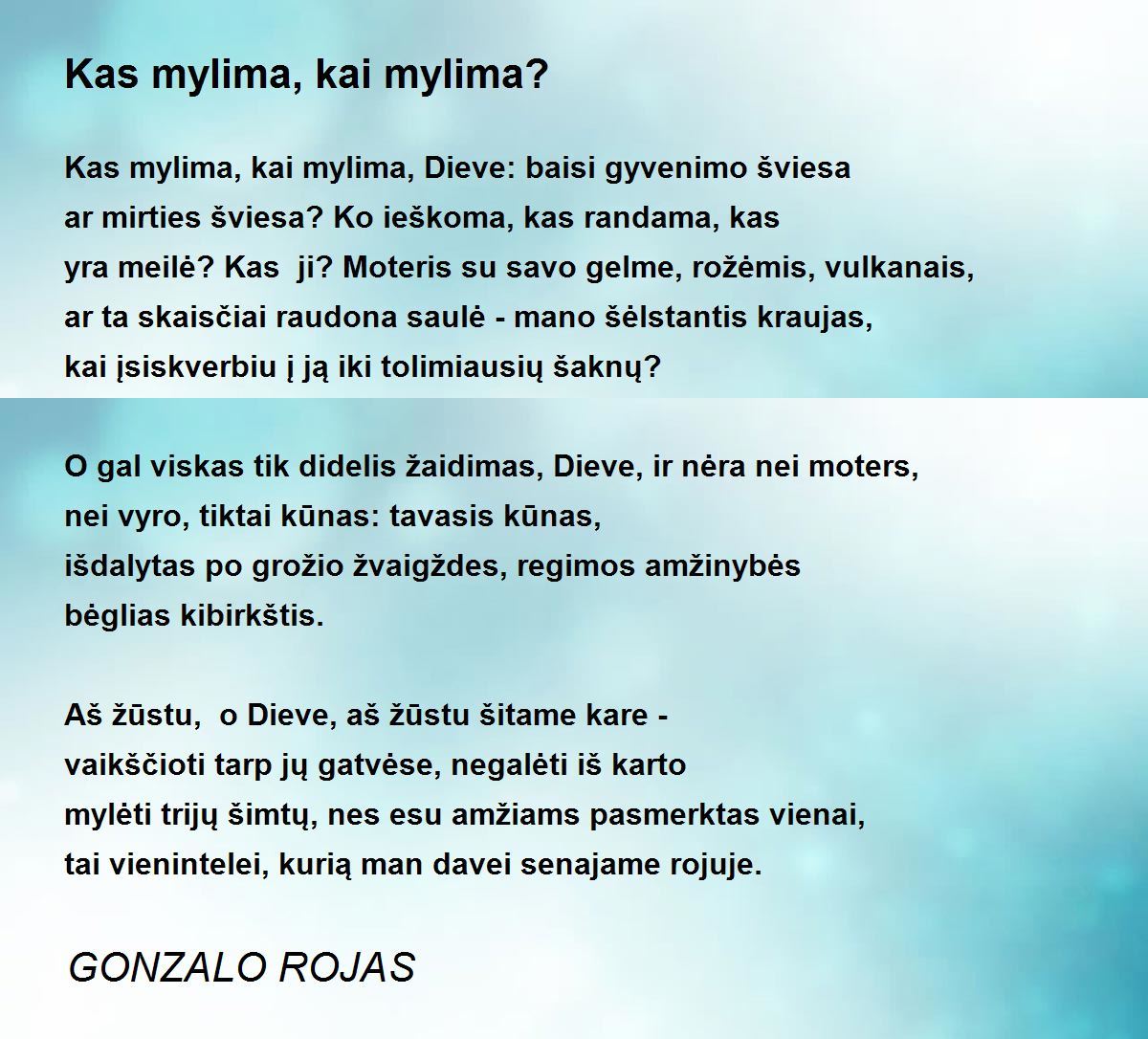 Kas mylima, kai mylima, Dieve: baisi gyvenimo šviesa