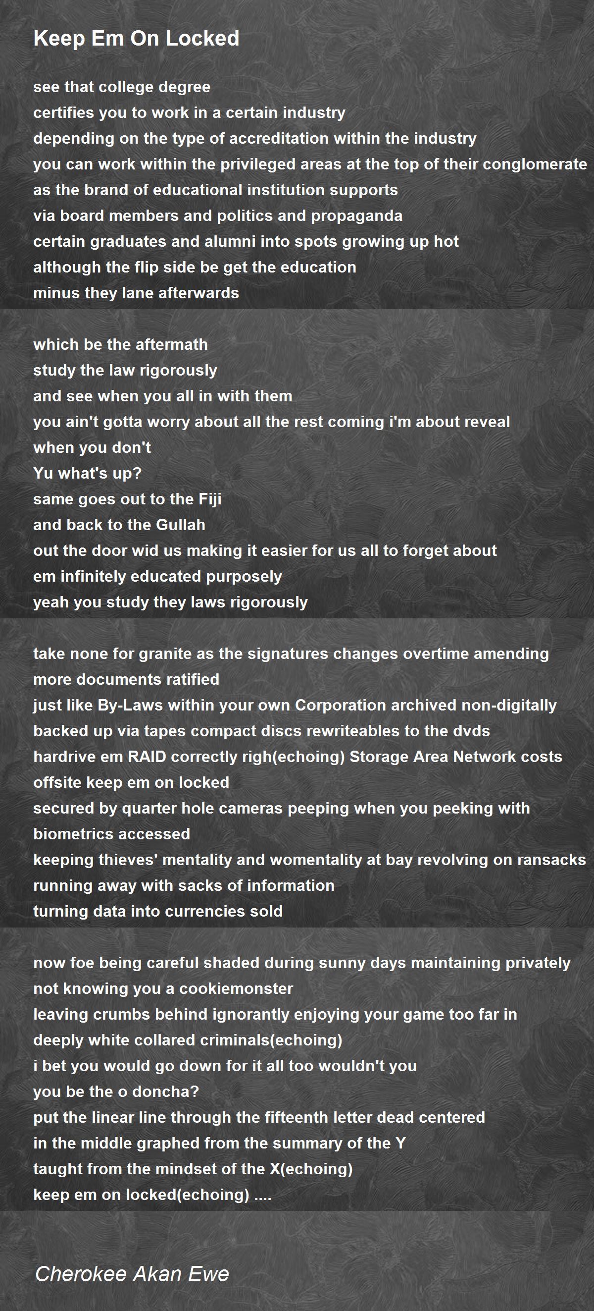out the door wid us making it easier for us all to forget about em infinitely educated purposely