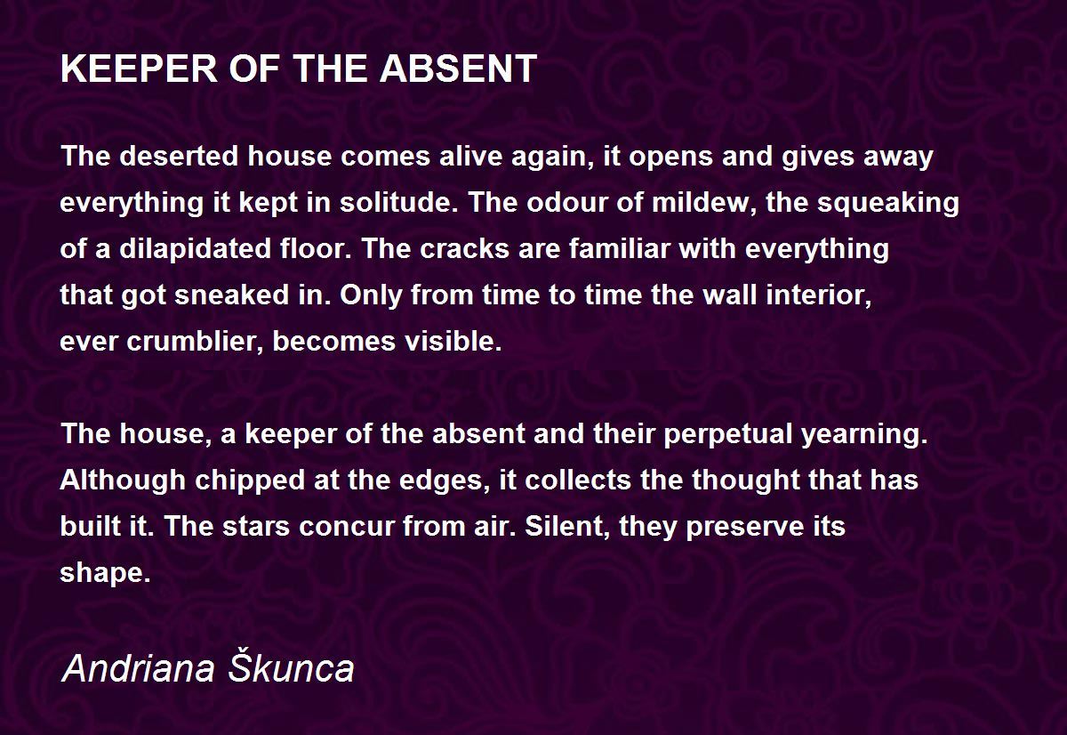 The house, a keeper of the absent and their perpetual yearning. Although chipped at the edges, it collects the thought that has built it. The stars concur from air. Silent, they preserve its shape.