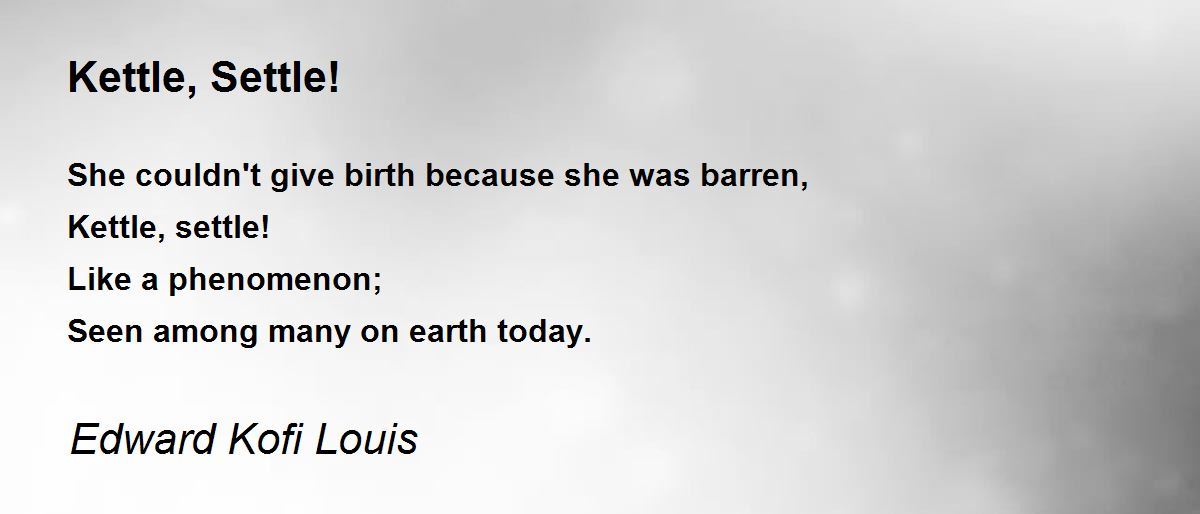 She couldn't give birth because she was barren, Kettle, settle! Like a phenomenon; Seen among many on earth today.