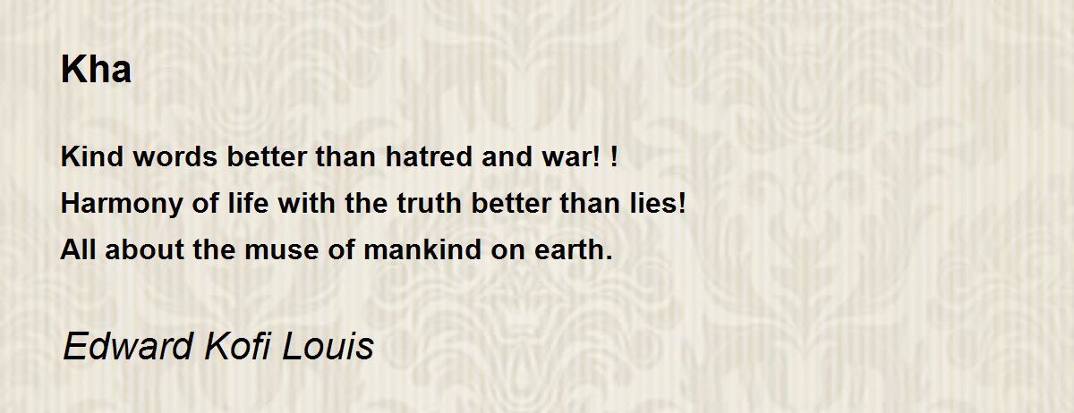 Kind words better than hatred and war! ! Harmony of life with the truth better than lies! All about the muse of mankind on earth.
