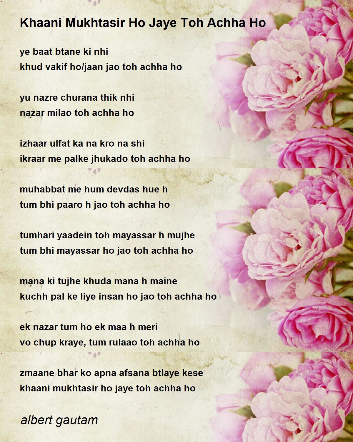 khaani mukhtasir ho jaye toh achha ho