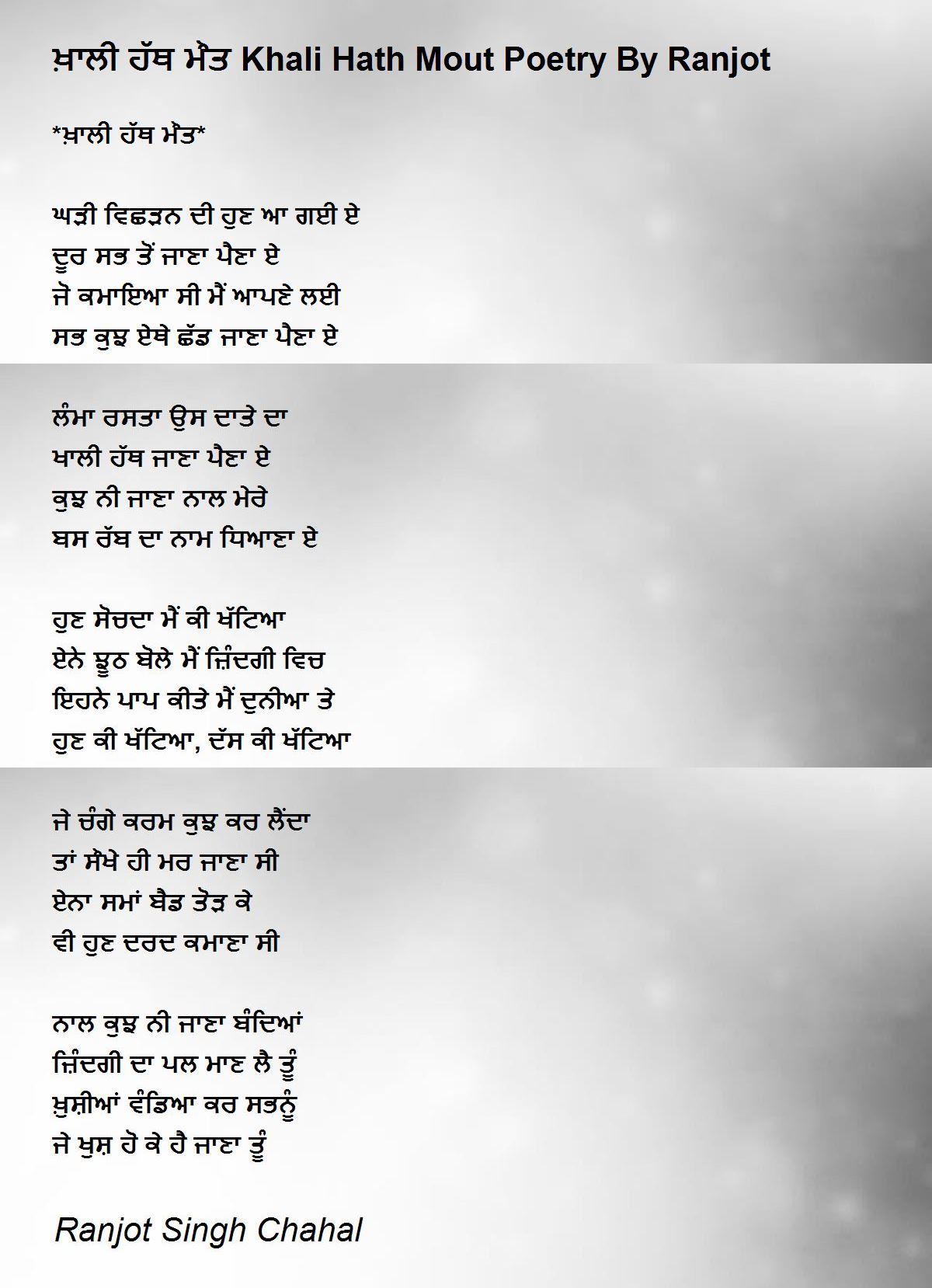 *ਖ਼ਾਲੀ ਹੱਥ ਮੌਤ*