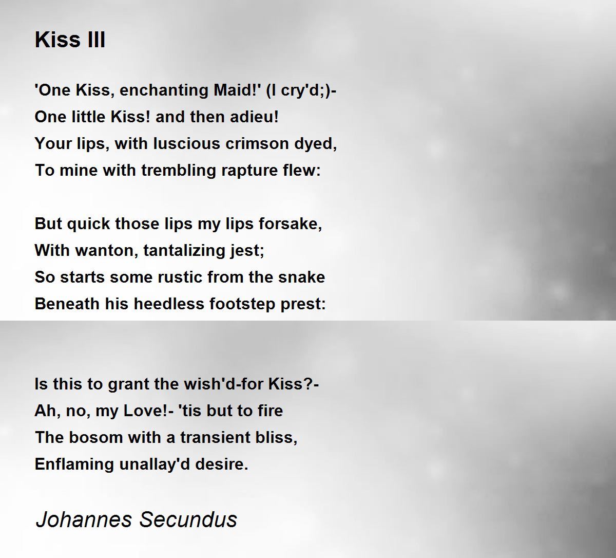 This poem mesmerizes me.5 Stars full for Johannes Secundus!