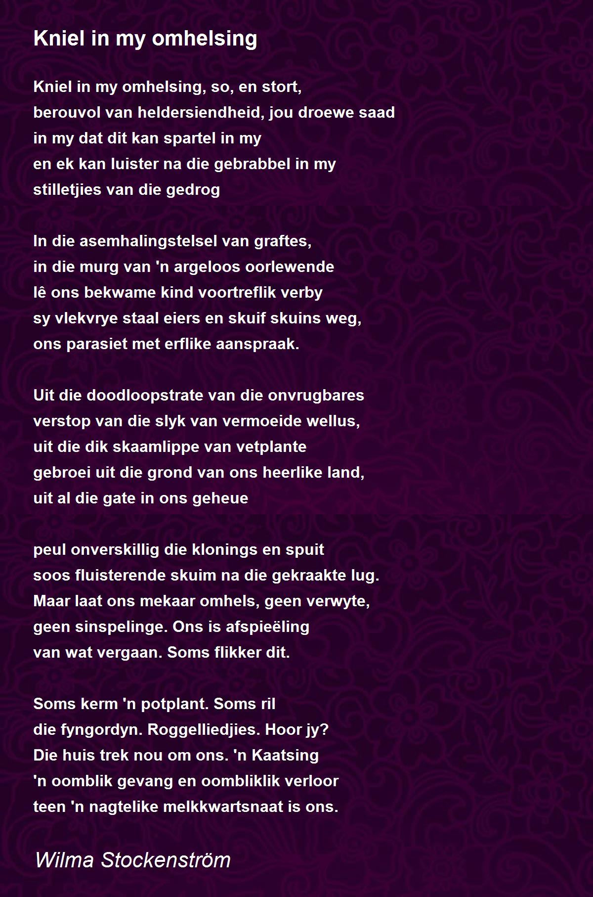 Maar laat ons mekaar omhels, geen verwyte,