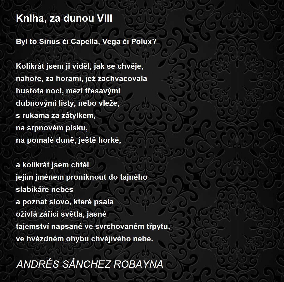 ve hvězdném ohybu chvějivého nebe.
