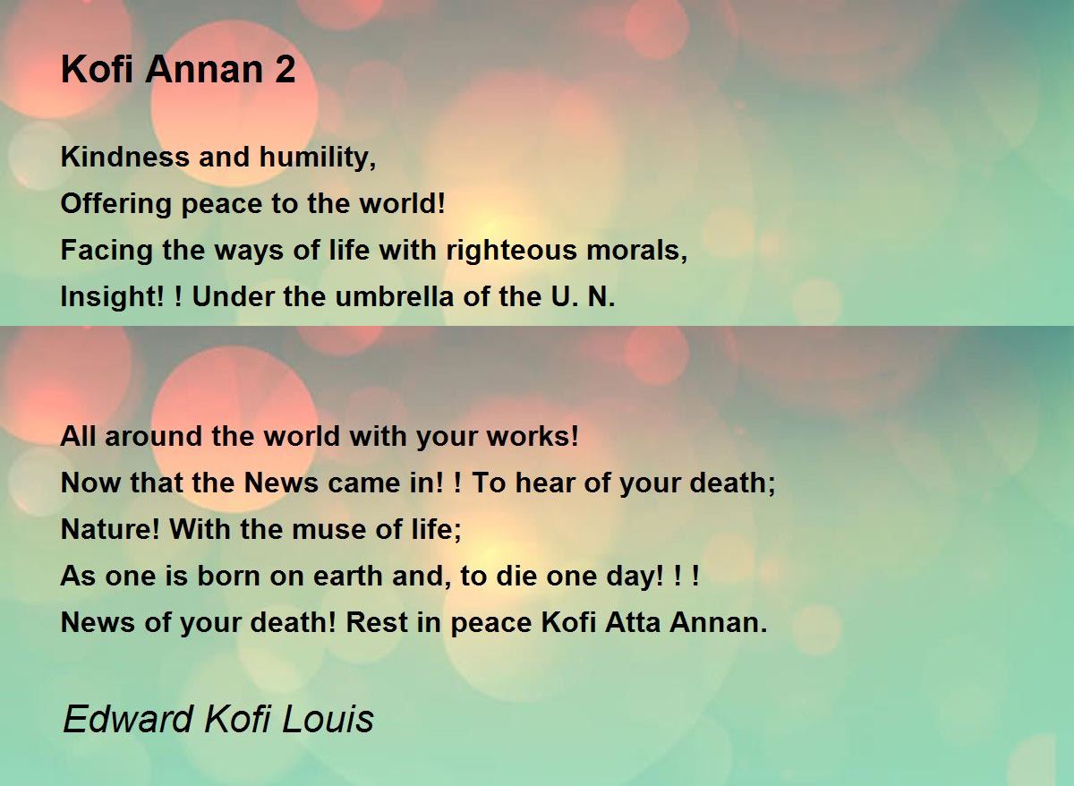 It is a great tribute to Kofi Atta Annan so nicely executed. Beautiful poem.