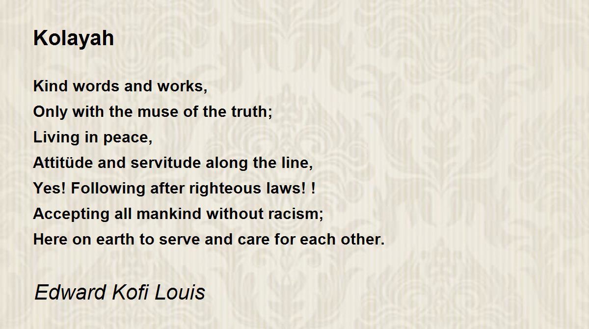 Kind words and works, Only with the muse of the truth; Living in peace, ....touching expression with nice theme. Beautiful poem.
