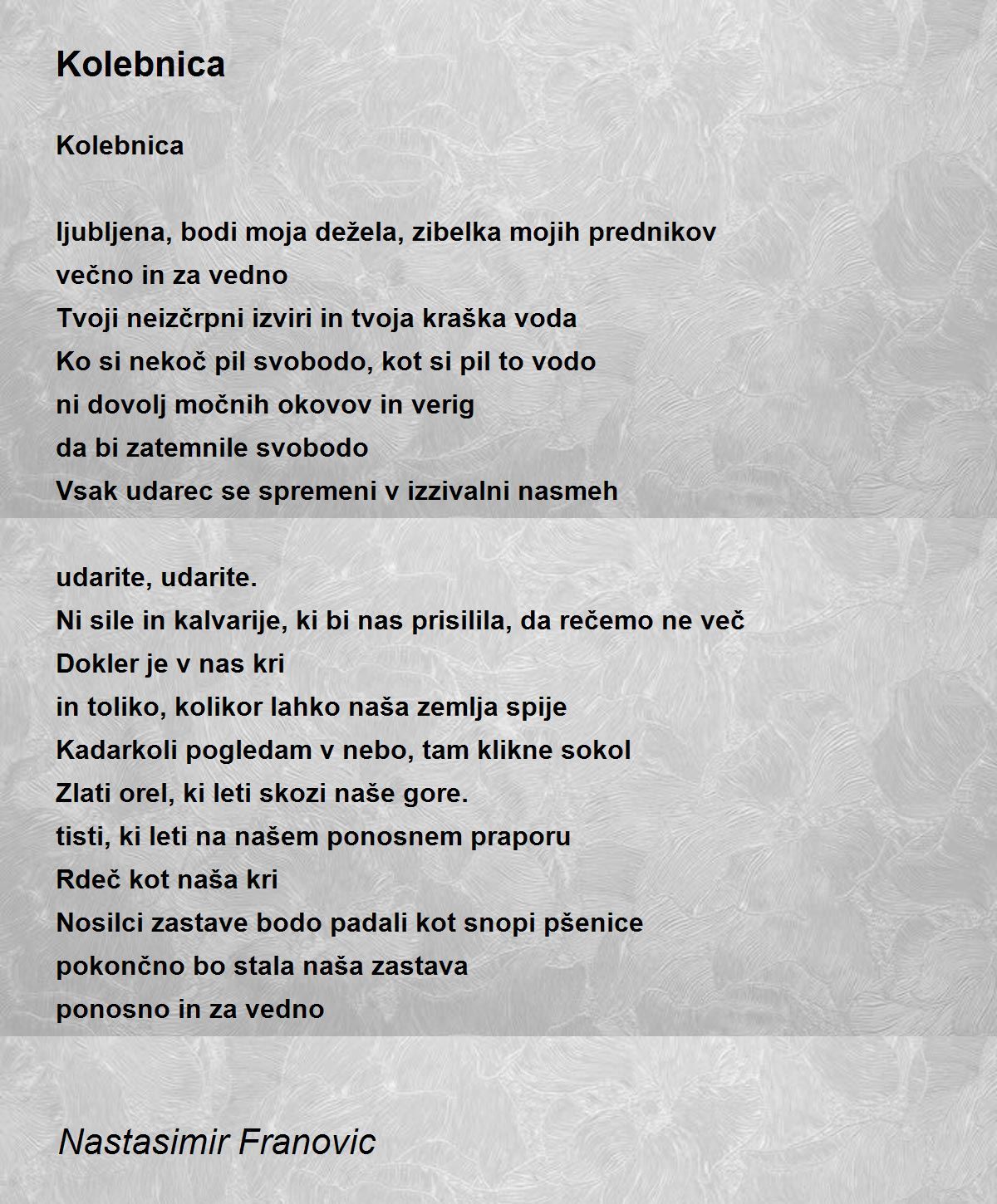 ljubljena, bodi moja dežela, zibelka mojih prednikov