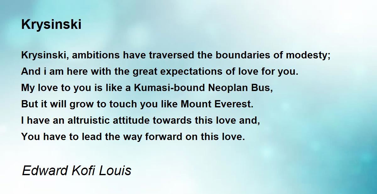 Krysinski, ambitions have traversed the boundaries of modesty;