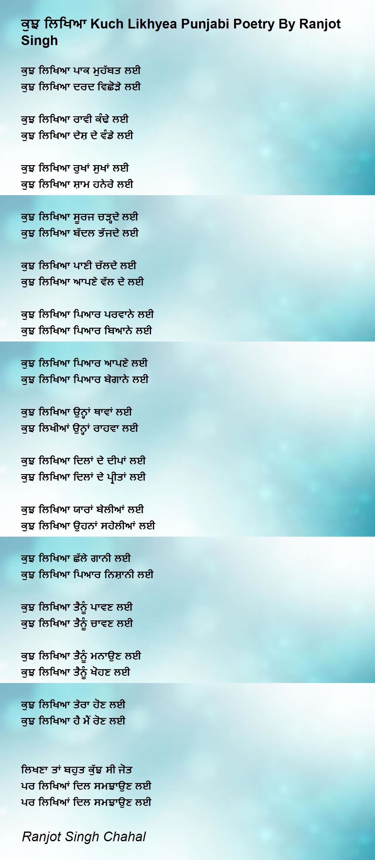ਕੁਝ ਲਿਖਿਆ ਤੈਨੂੰ ਚਾਵਣ ਲਈ