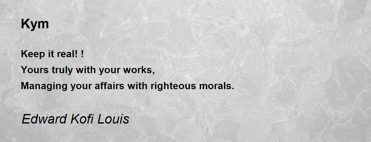 Keep it real! ! Yours truly with your works, Managing your affairs with righteous morals.