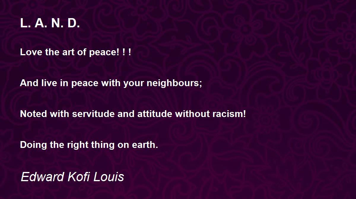 Living in peace! ! ! ! Doing the right thing on earth! Without racism. Thanks for your comment on my poem. Stay blessed always.