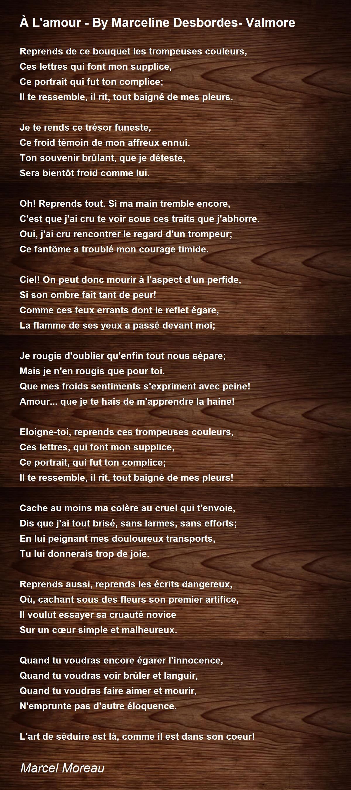 Je l'ai dit à l'amour, qui déjà s'est enfui.