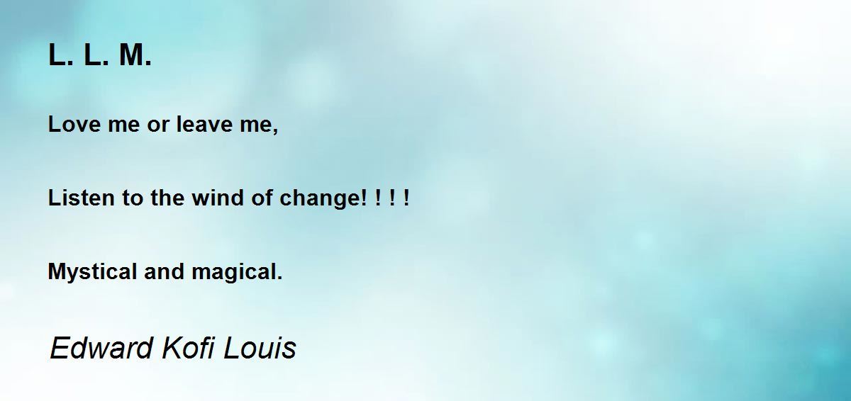 Love me or leave me, Listen to the wind of change! ! ! ! Mystical and magical.